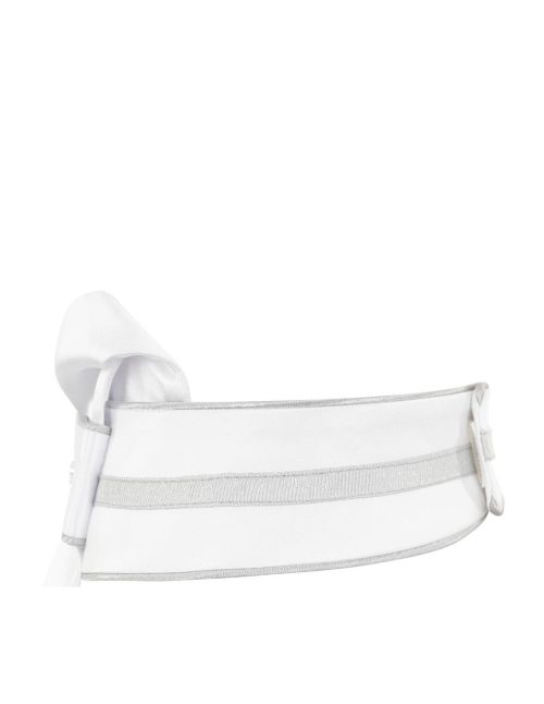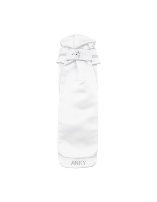 Plastrón de mujer blanco con ribetes en contraste plata y acabado pedreria-Stone-DeLuxe-Anky