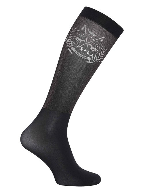 Calcetines finos de caña alta negros con brillantina y el logotipo impreso en el lateral para mujer-HV POLO