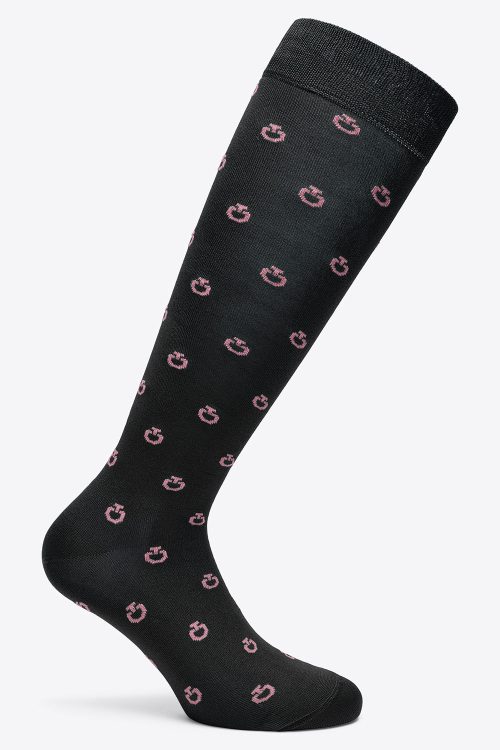 Calcetines altos color negro con estampado de mini logotipo en color lila – Cavalleria Toscana