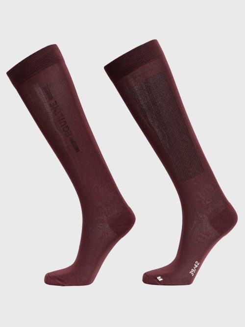Calcetines de caña alta burdeos con el logotipo en vertical de micro tachuelas para mujer -Galz-Equiline