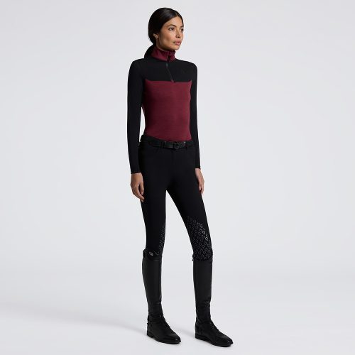 Polo técnico de entrenamiento negro y burdeos de manga larga con cuello alto y media cremallera para mujer – Cavalleria Toscana