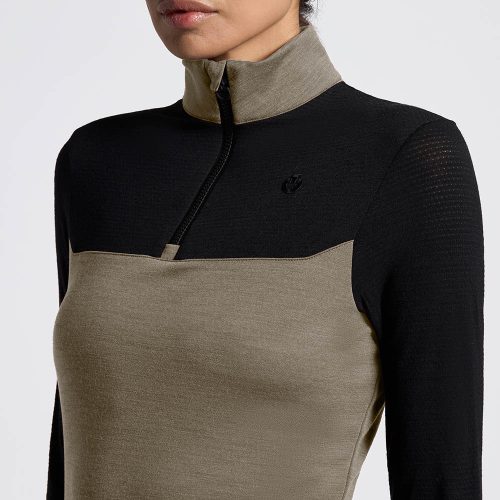 Polo técnico de entrenamiento verde y negro de manga larga con cuello alto y media cremallera para mujer – Cavalleria Toscana