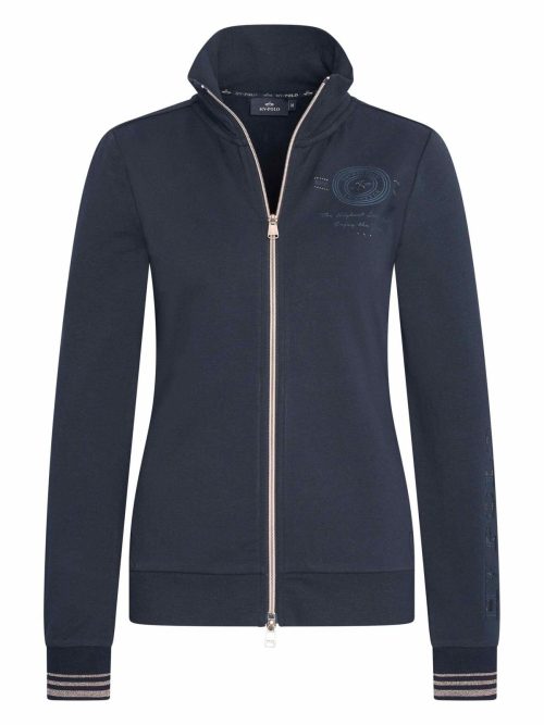 Women’s navy technical jacket with front zipper, logo on sleeve and shoulder – ANKY