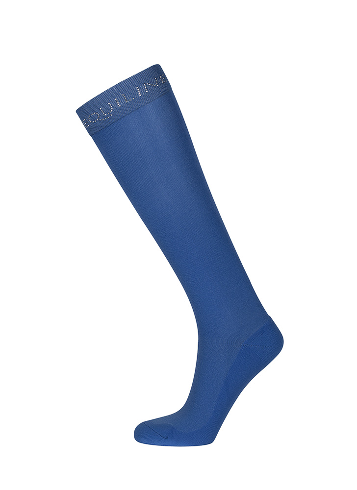 Blue knee-high socks decorated with mini studs. The studs are Equiline’s signature detail at the top.