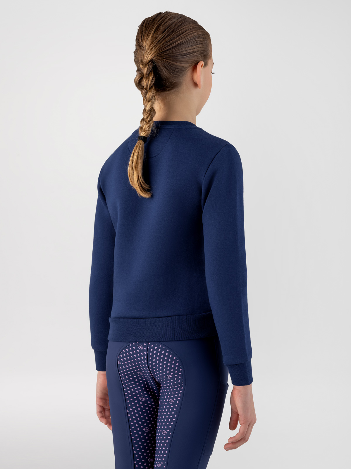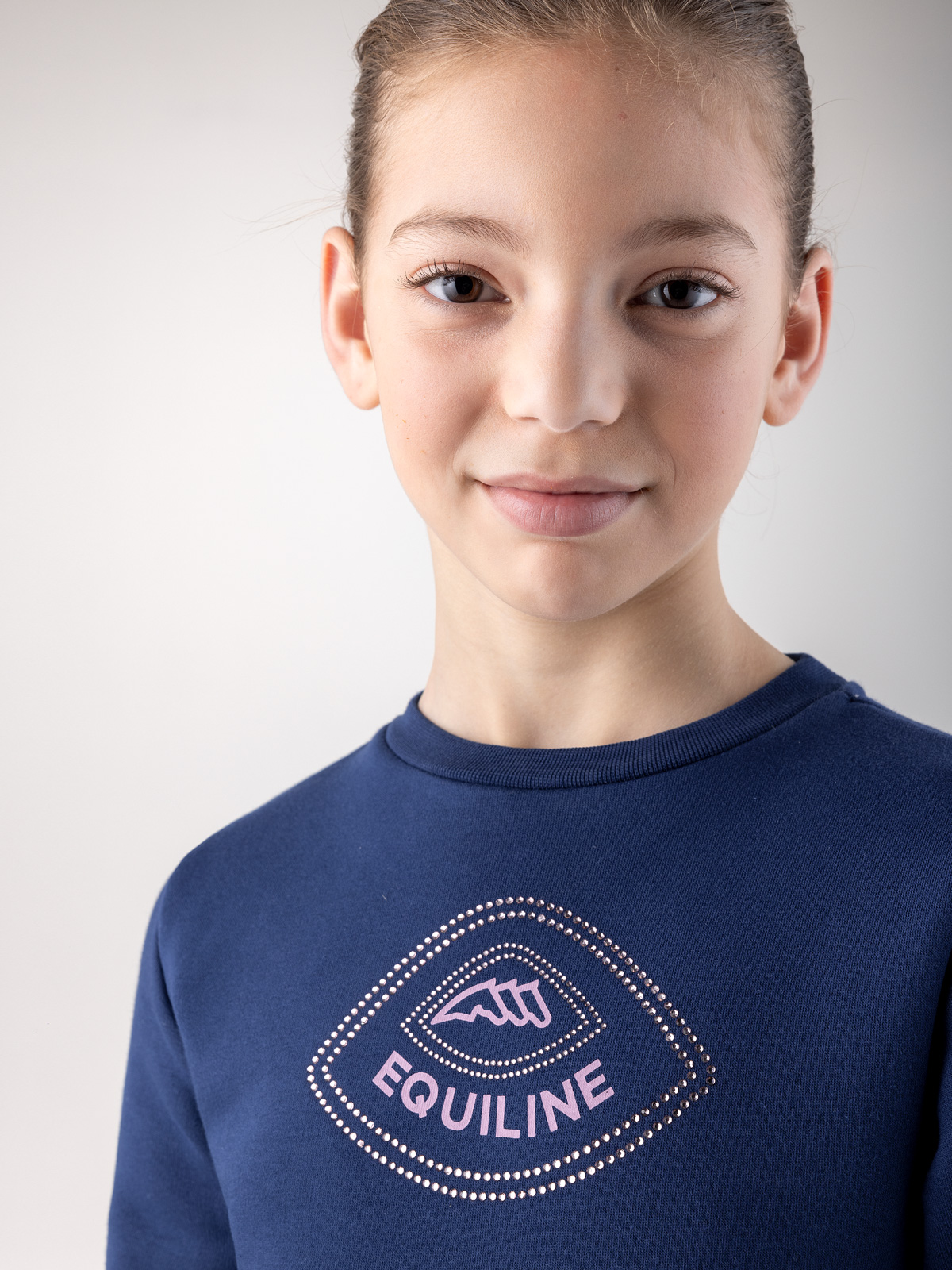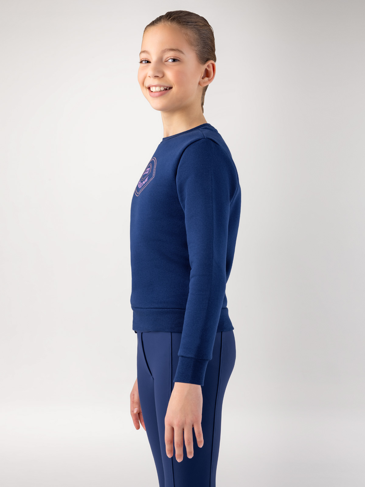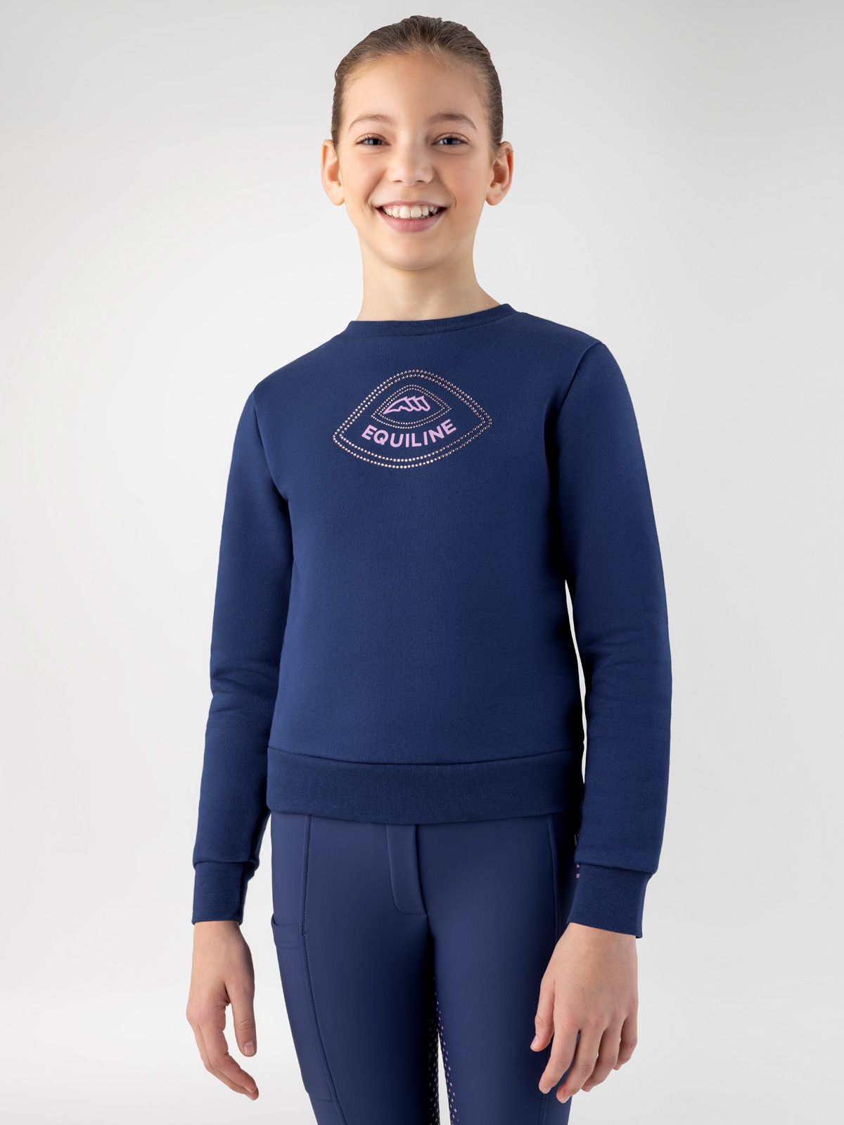 Girls’ Navy Fleece Hoodie with Pink Rhinestone Logo – Cedril – Equiline
