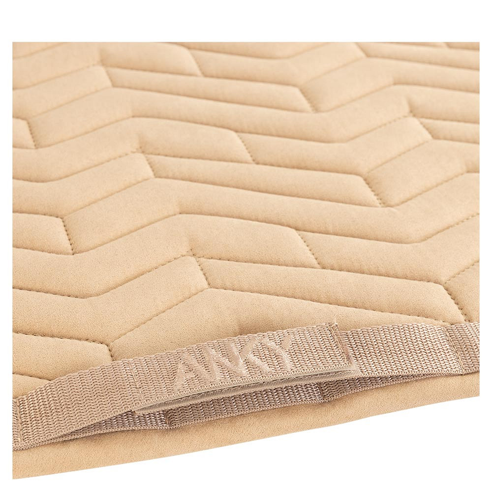 Light brown dressage saddle pad (amphora) with horizontal zigzag embroidery and a shiny cord of black stones – Anky