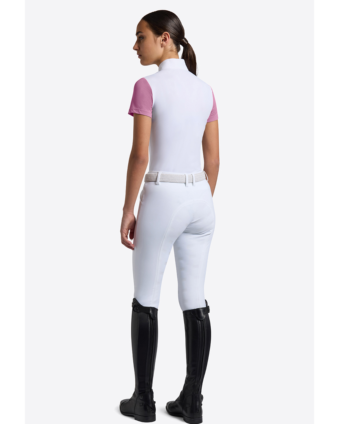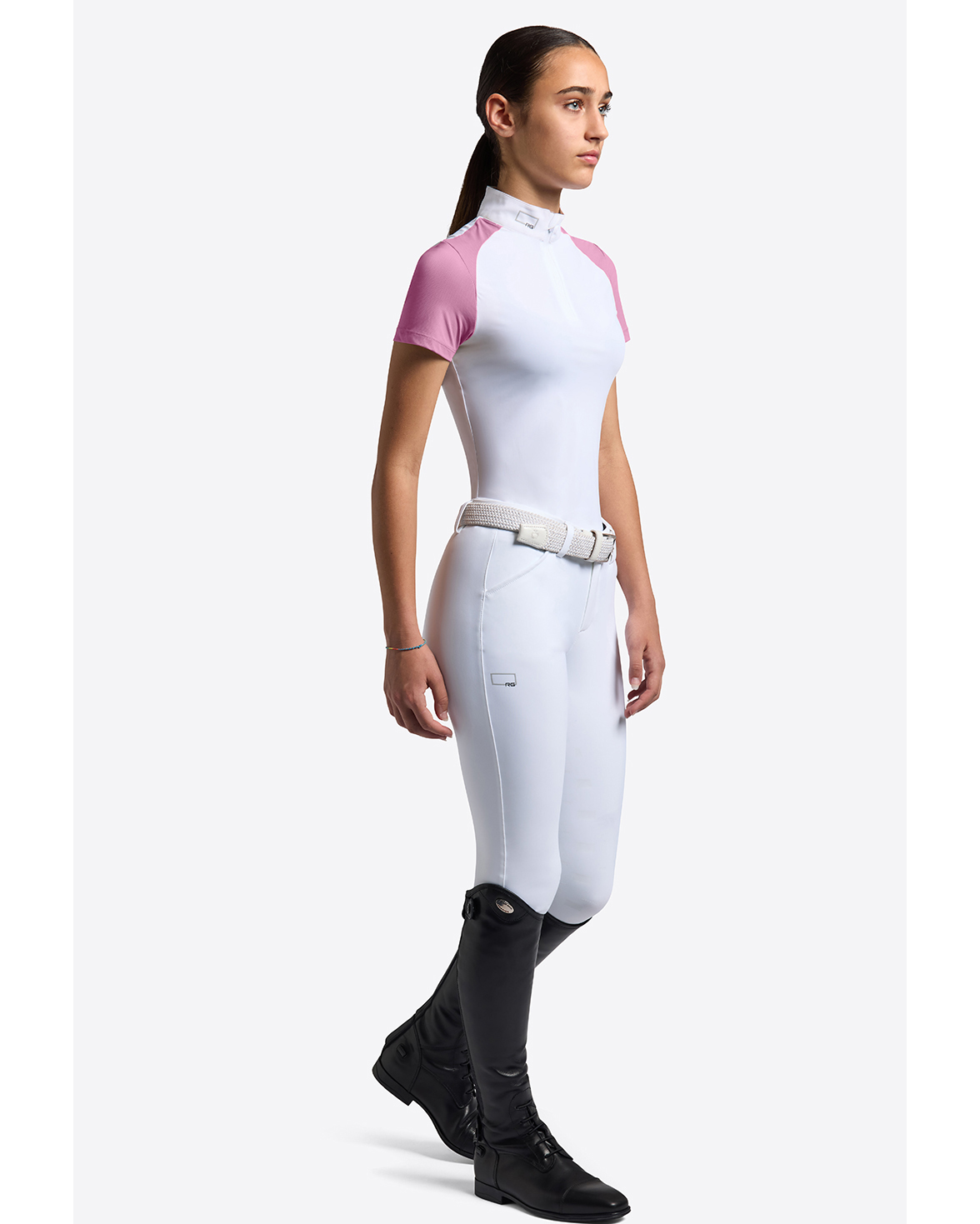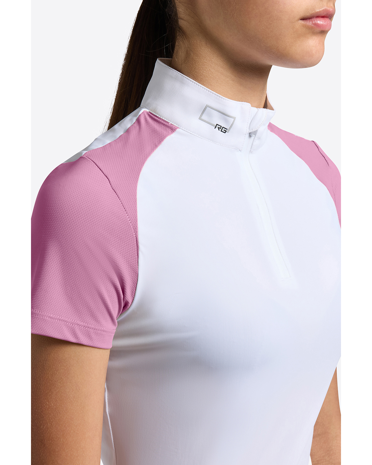 Short-sleeve white competition polo with pink details for girls – RG
