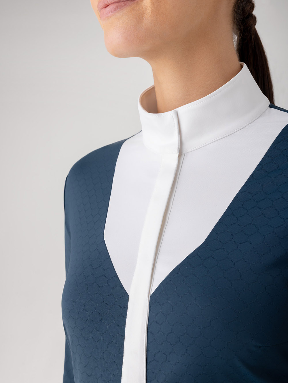 Women’s navy blue and white long sleeve racing shirt Estock – Equiline