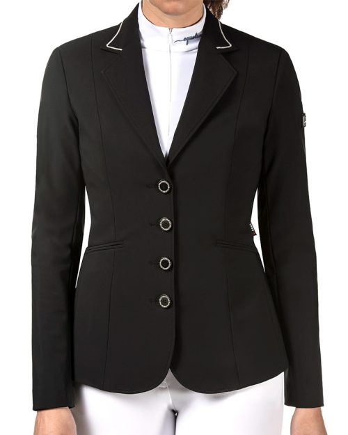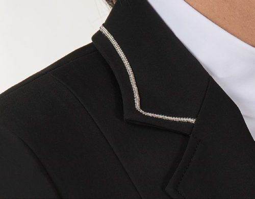 Americana de competición azul claro en tejido tecnico con cuello alcántara negro y ribetes en contraste para mujer – Cavalleria Toscana