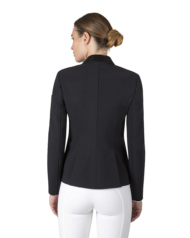 Americana de competición negra con tejido de saten en cuello bolsillos y botones – Gotreg – Equiline