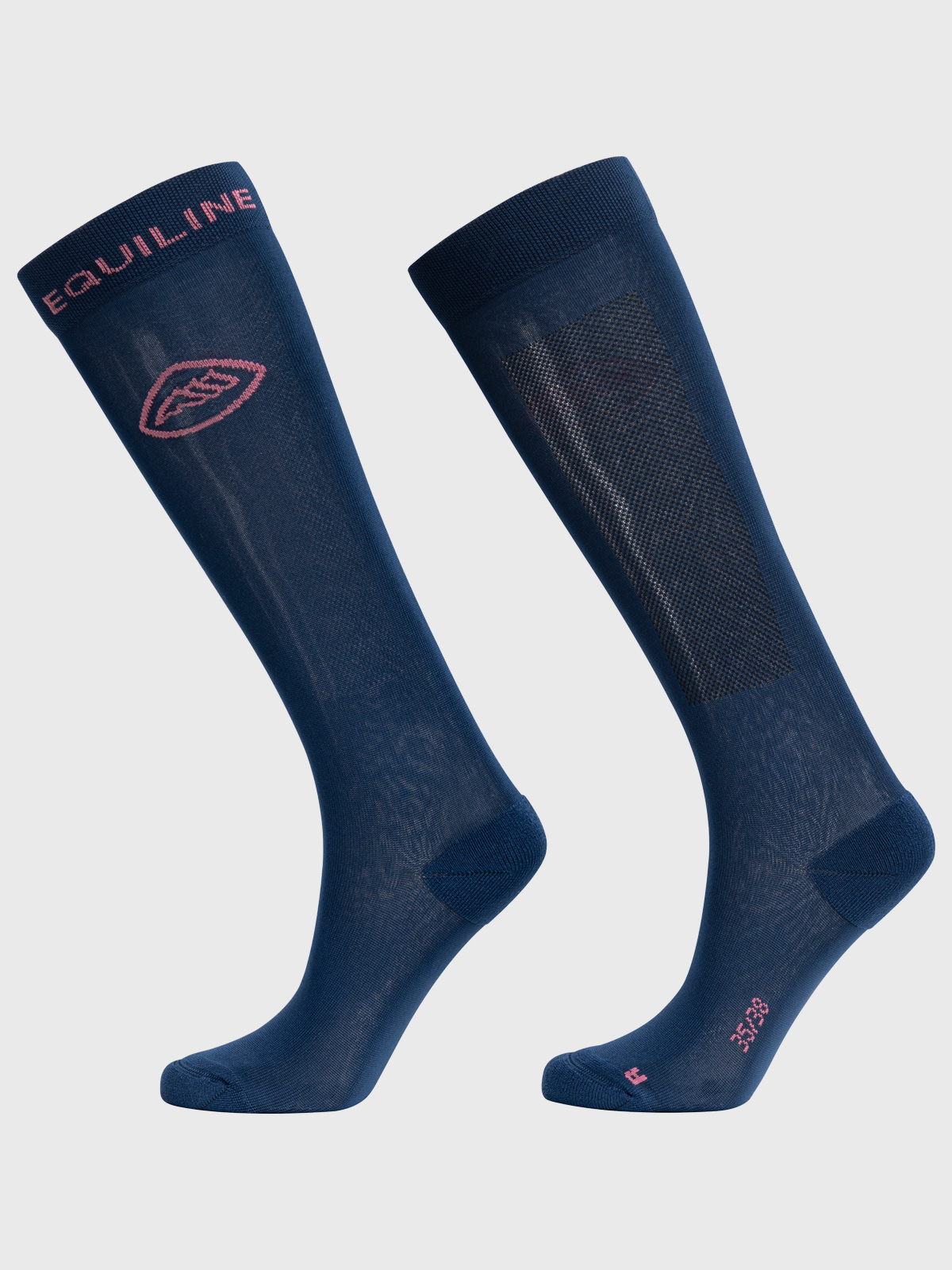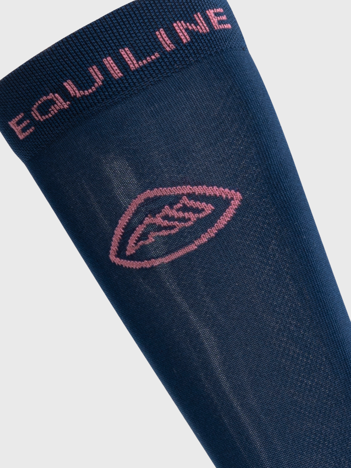 Calcetines de caña alta junior (unisex) azul marino con el logotipo en rosa -Equiline