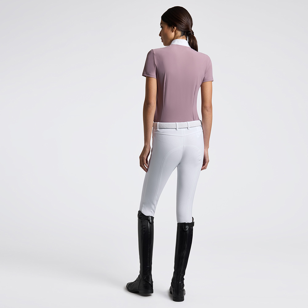 Camiseta técnica de competición para mujer Cavalleria Toscana con mangas cortas, cuello de popelina blanca, inserciones de malla termosellada y cremallera frontal. Máxima transpirabilidad y estilo en la pista.