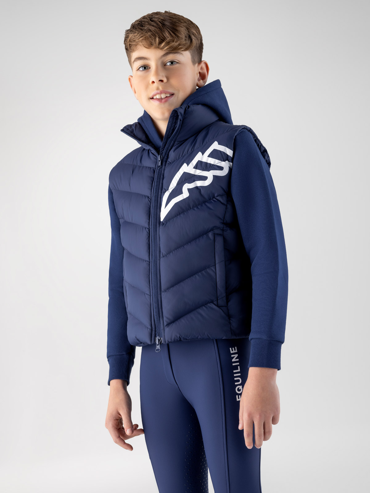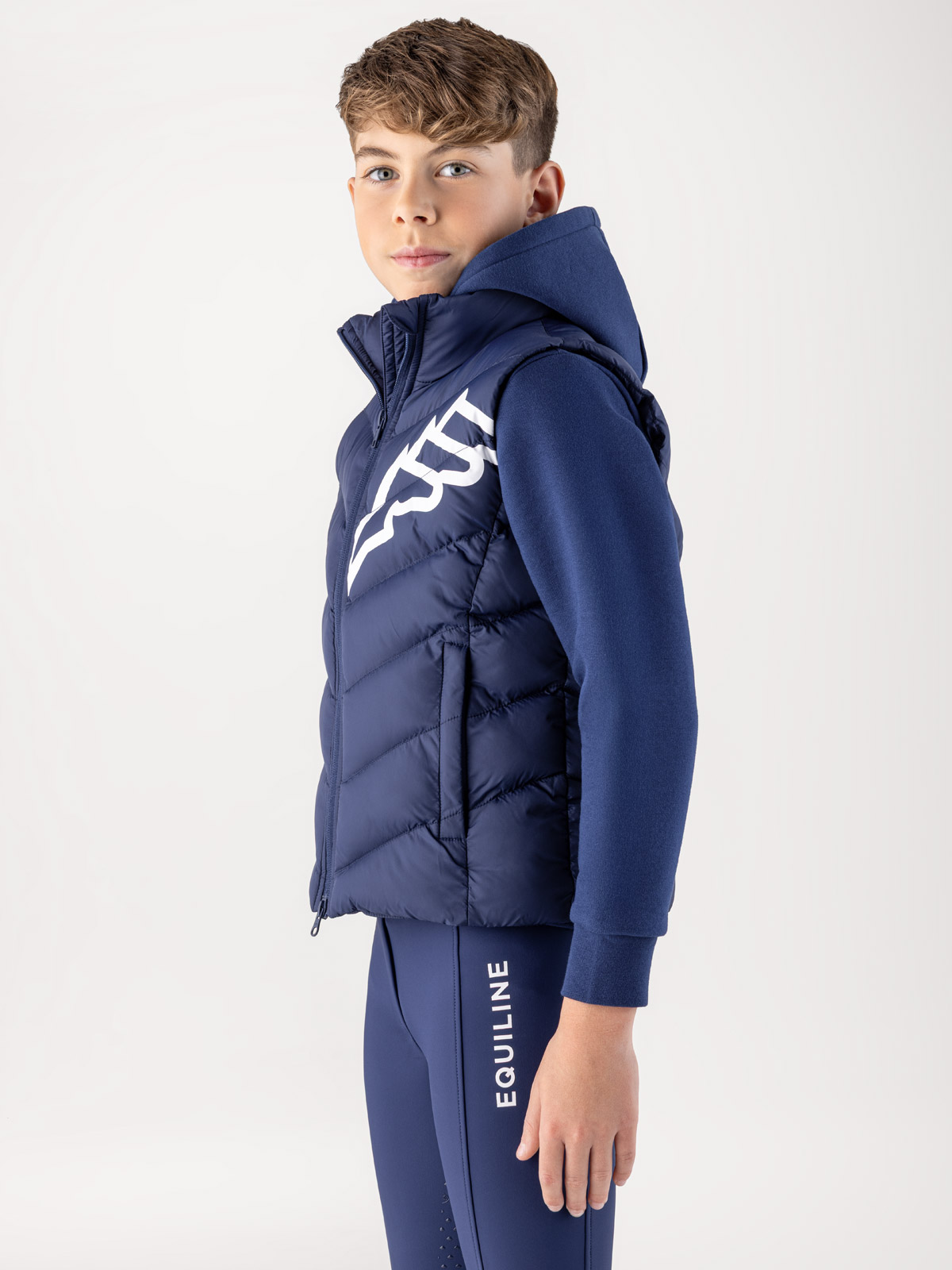 Chaleco acolchado azul marino con el logotipo en blanco para junior Cerk – Equiline