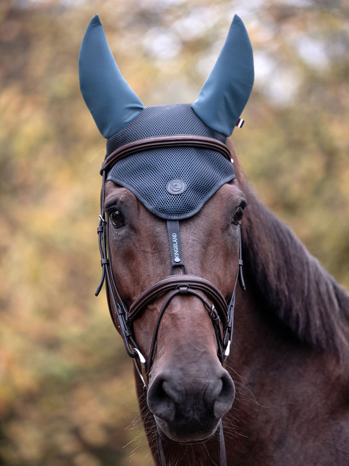 Orejeras azul marino con malla negra y orejas antirruido para caballo y pony-KLMaxine-Kingsland