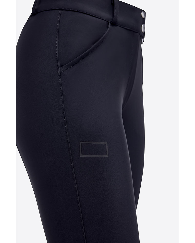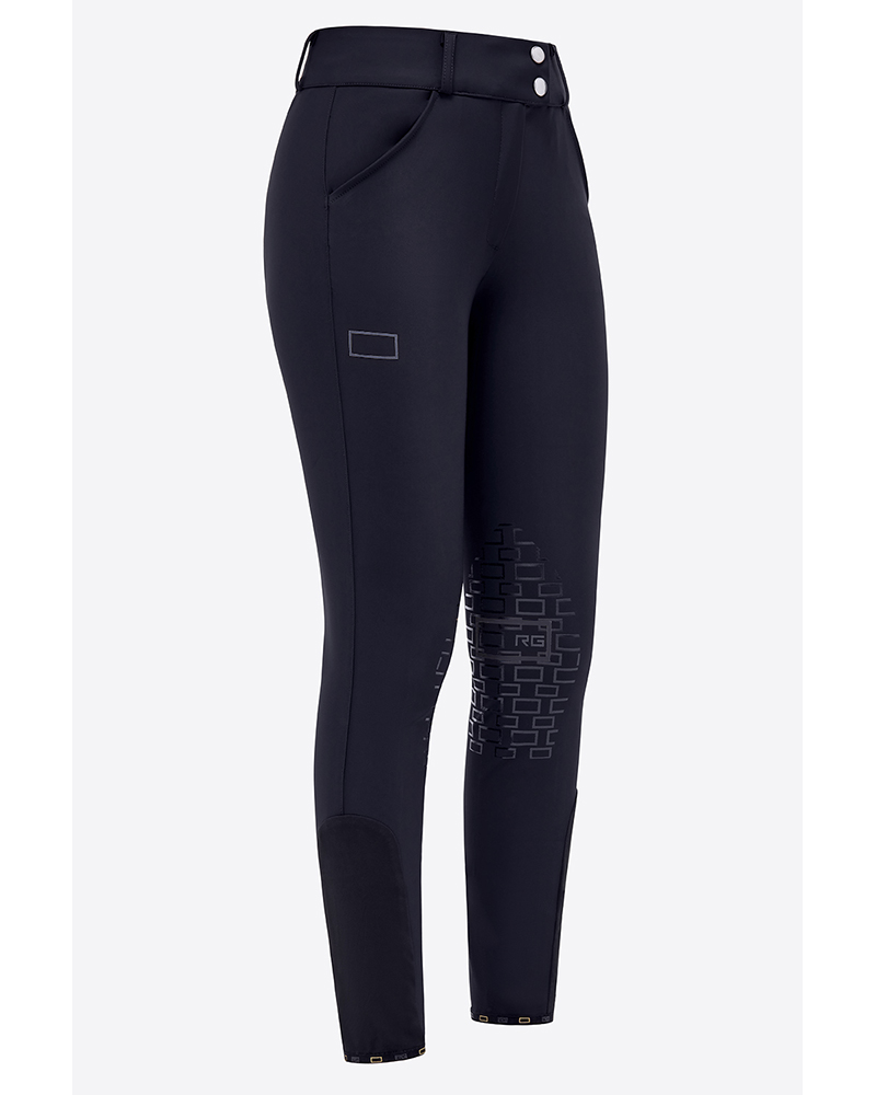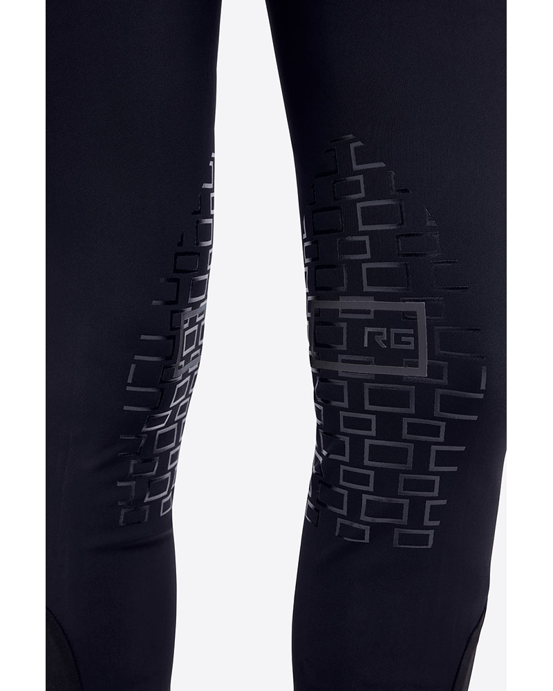 Estos pantalones de salto están realizados en tejido técnico bi-stretch y presentan un agarre tono su tono all’altezza del ginocchio para garantizar la giusta aderenza alla sella. La característica especial de este modelo es el agarre en el interior de la cintura, perfecto para acompañar mejor toda tu camisa. Presenta una chiusura con zip sul davanti rinforzata da doppio bottone e ampi passanti per essere indossato comodamente con la cintura. Il calzino nella parte finale del pantalone avvolge il polpaccio sotto lo stivale ed ha un’azione traspirante.La rifinitura con logo RG stampato a contrasto Conferisce al capo un look moderno.Disponibile en vari colori.