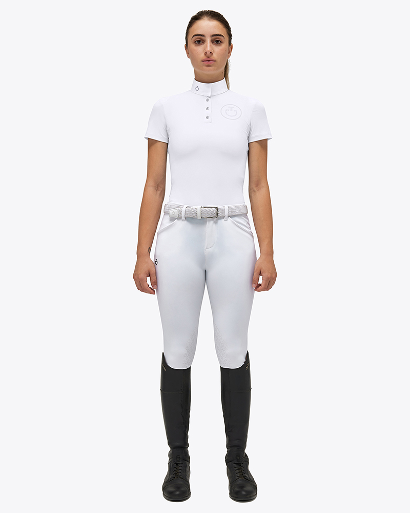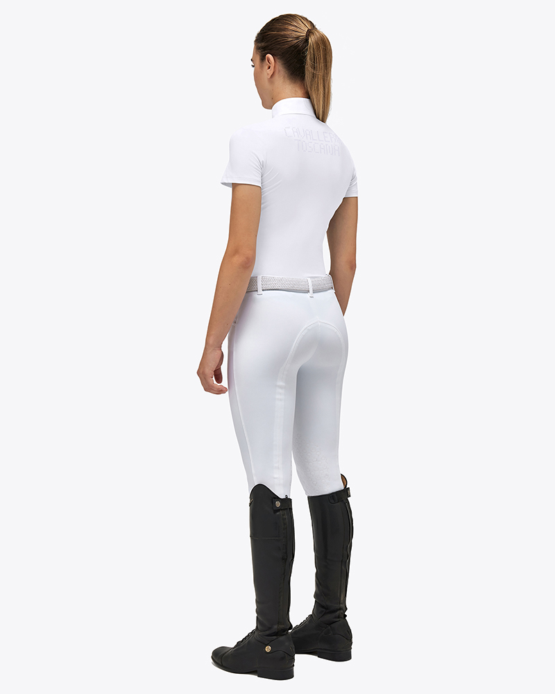Polo de competición blanco de manga corta para niña – Cavalleria Toscana