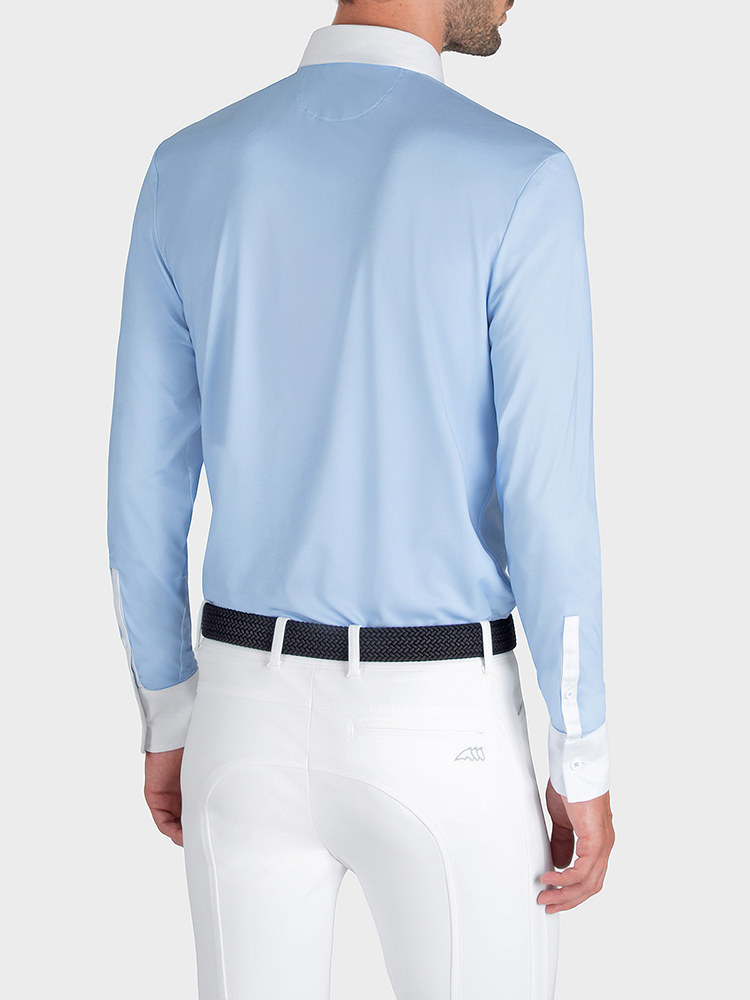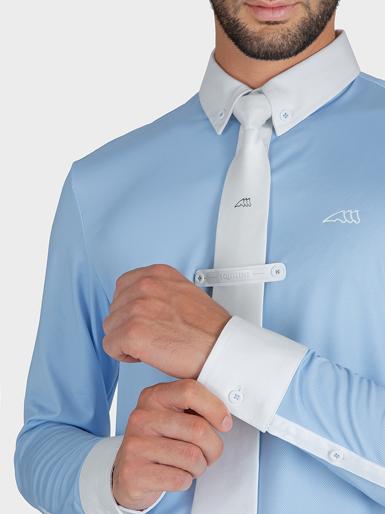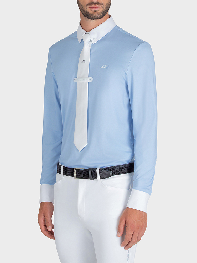 Polo de competición de manga larga azul cielo para hombre – Evik – Equiline