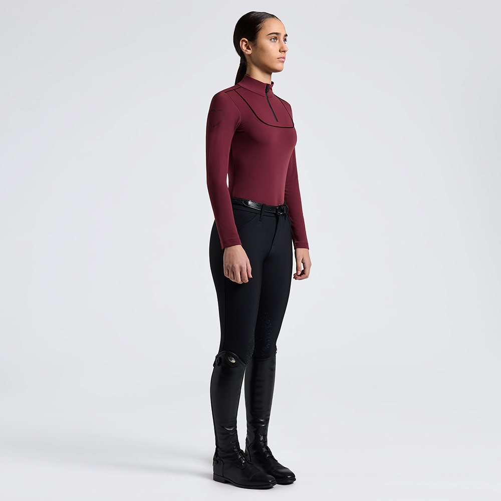Polo técnico de entrenamiento burdeos y manga larga con ribetes en contraste en el pecho y los hombros para niña – Cavalleria Toscana