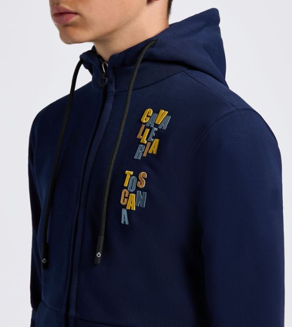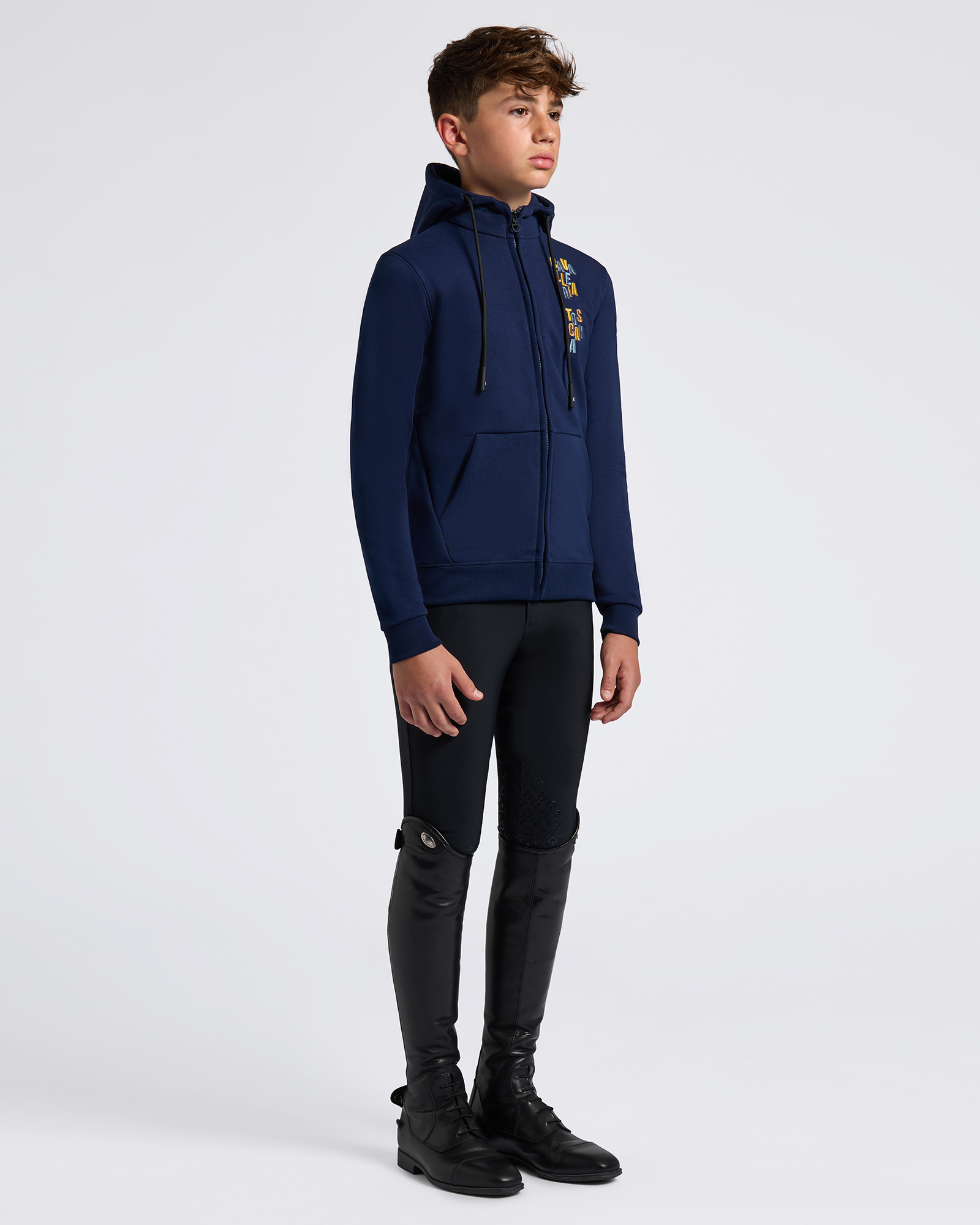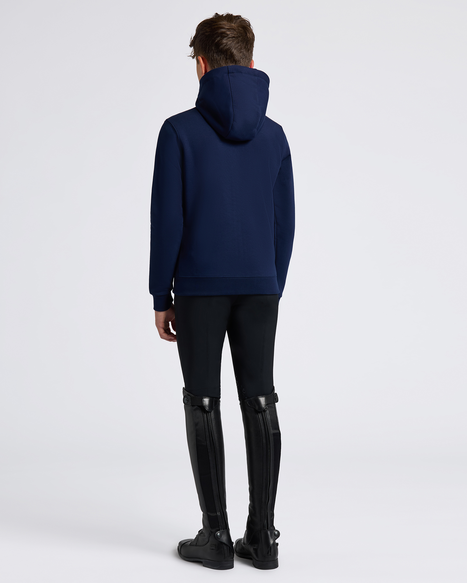 Sudadera azul marino con capucha y detalle del logotipo multicolor para niño- Cavalleria Toscana