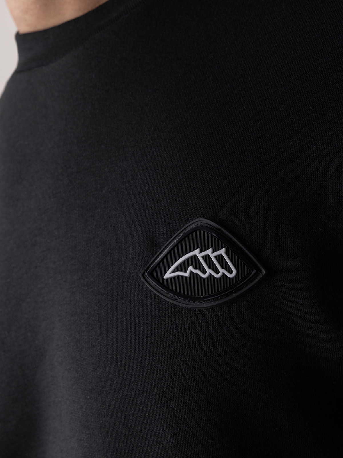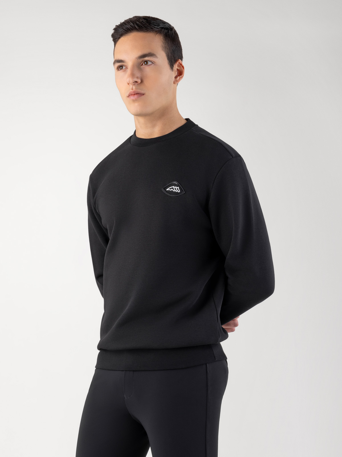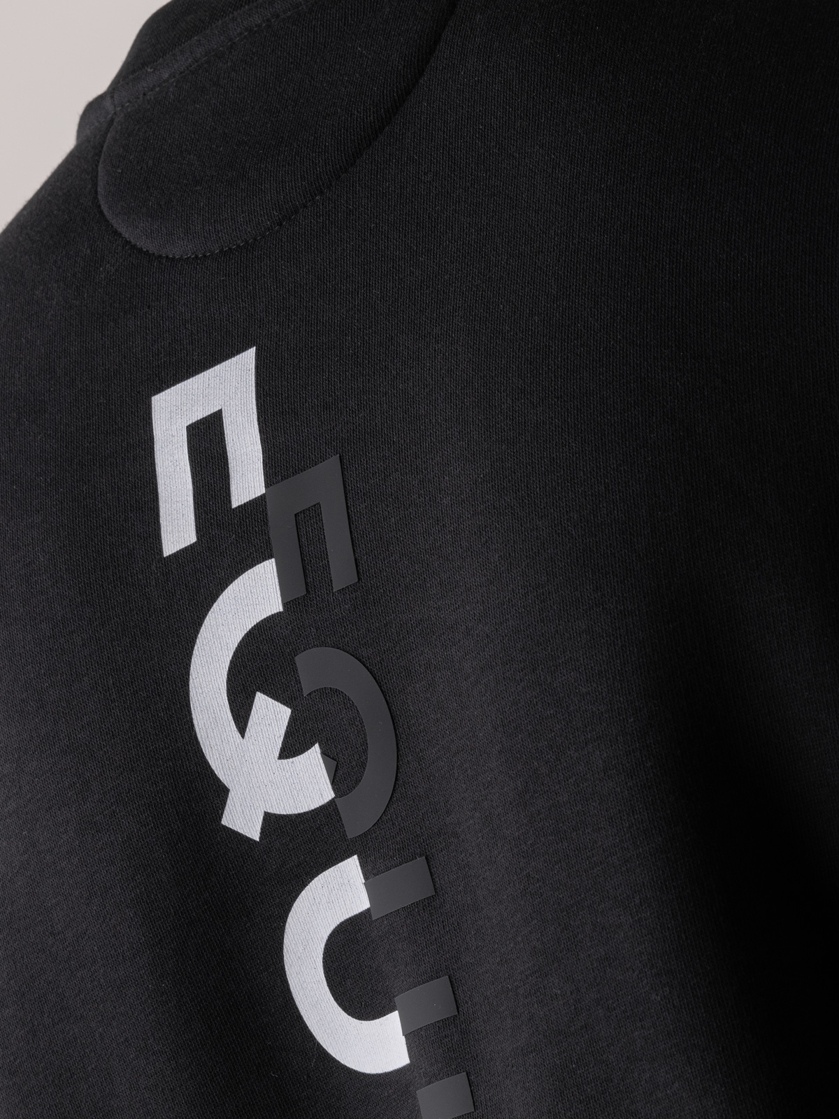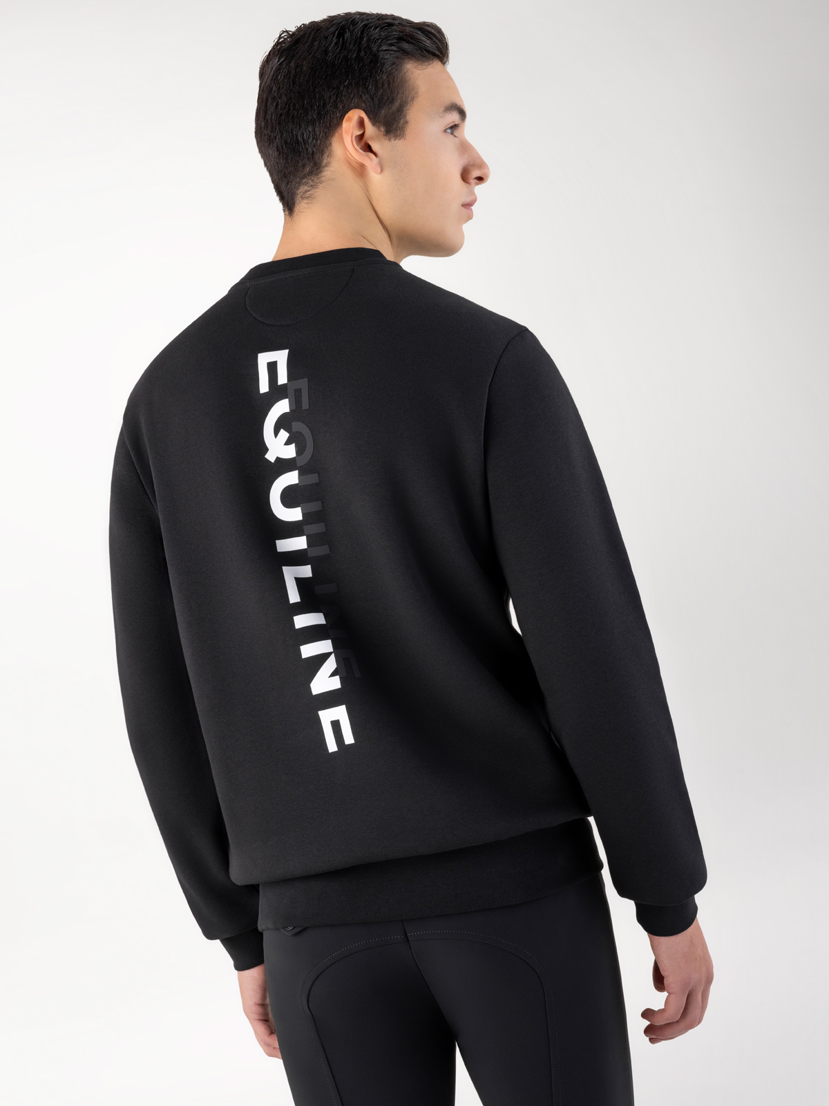 Sudadera negra de cuello redondo con el logotipo de letras blancas en la espalda para hombre Cirok – Equiline