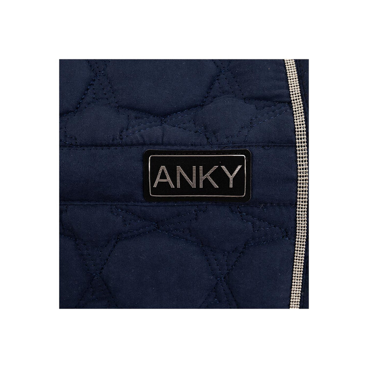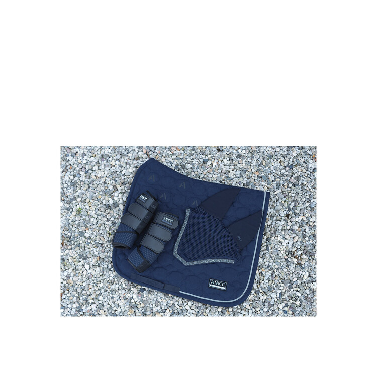Sudadero de doma azul indigo (Mood Indigo) con detalle de cuentas metalicas plateadas en la parte posterior para caballo-ANKY-