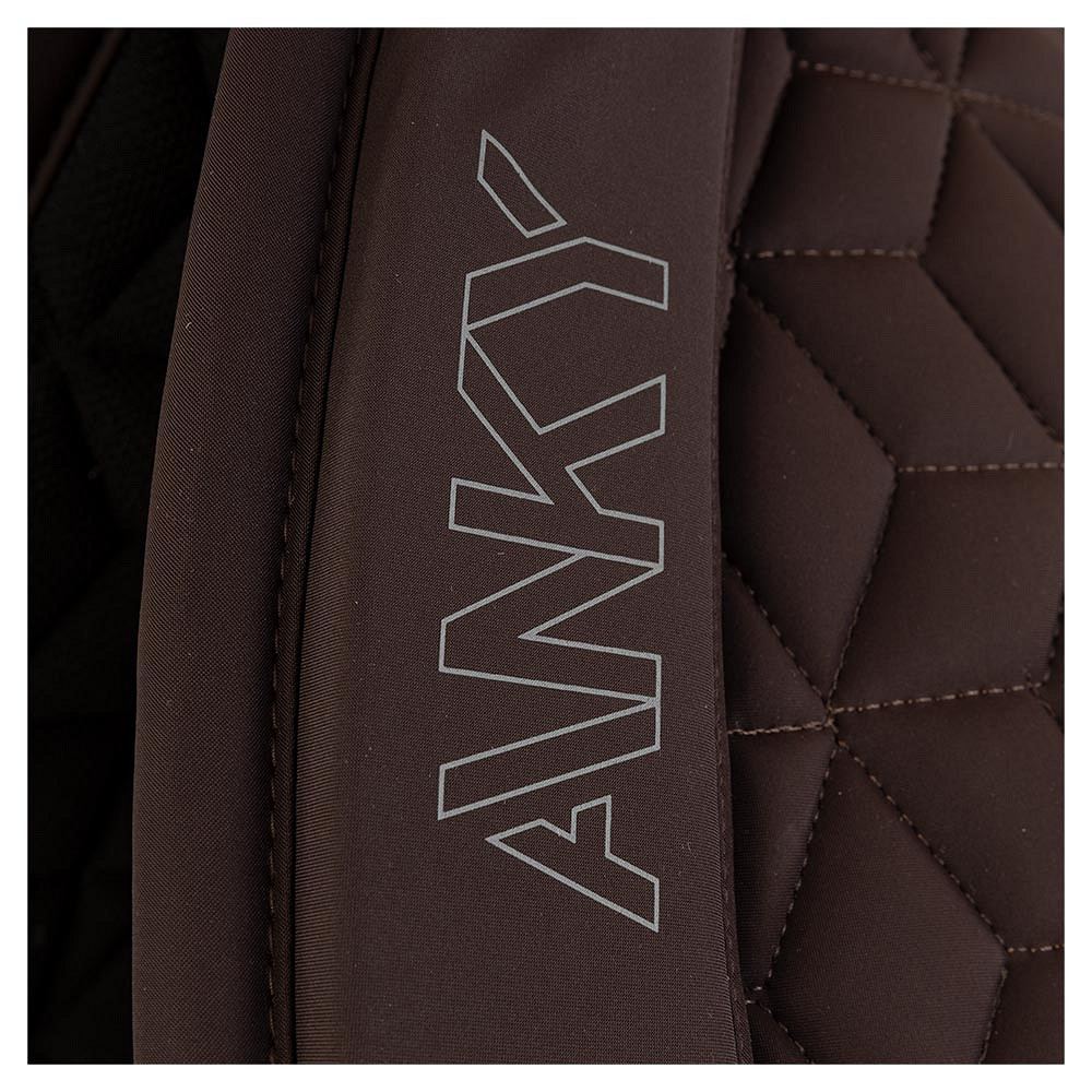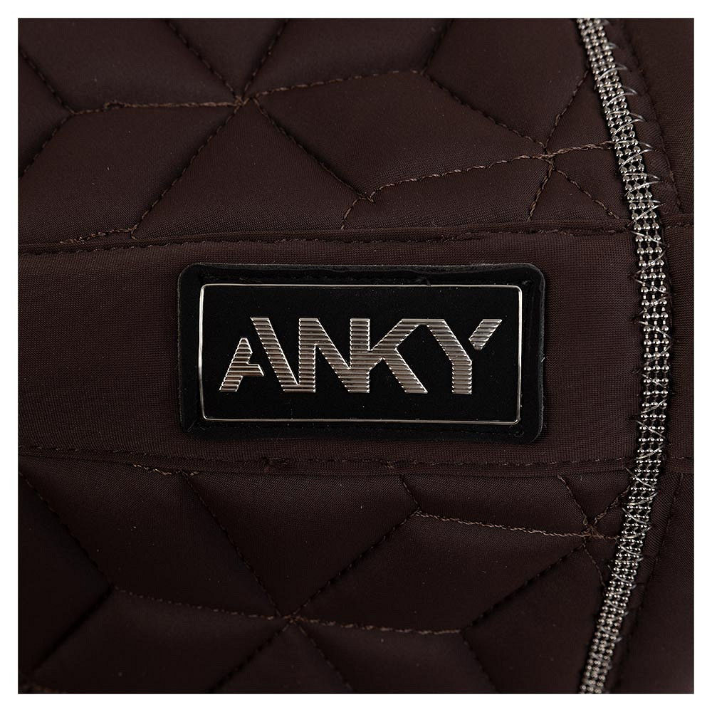 Sudadero de doma marron chocolate oscuro (chocolate torte) con detalle de cuentas metalicas plateadas en la parte posterior para caballo-ANKY-